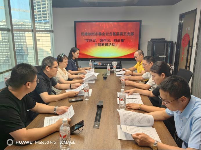 7月9日下午,民建徐州市委會云龍區基層委員會五支部在會員企業徐州桑瑞科技有限公司會議室召開“學規定、強作風、樹形象”主題教育學習會。會議由支部主委葛文生主持。