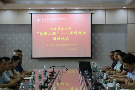 9月12日,為慶祝第35個教師節,進一步推進“不忘合作初心,繼續攜手前進”主題教育活動的深入開展,不斷豐富徐州民建“思源工程”品牌活動的內涵,徐州民建賈汪支部組織舉辦了“思源工程”--“尊師重教”捐贈活動。民建徐州市委會專職副主委王奉君、賈汪區委常委、統戰部部長苗國慶、賈汪區委統戰部副部長俞守軍、賈汪區法院副院長、民建賈汪支部主委周永光、江蘇師范大學附屬實驗學校黨總支書記、校長朱景坤等20余人參加了活動。