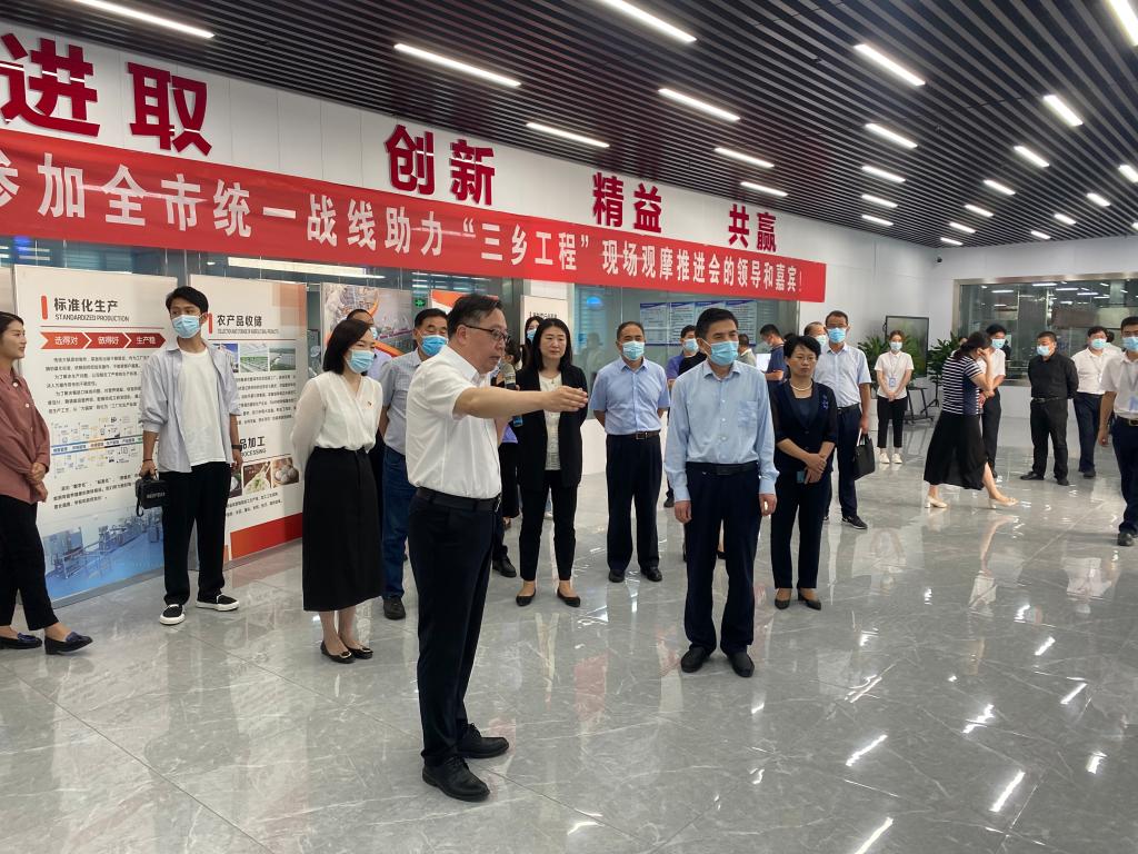 9月29日上午,全市統一戰線助力“三鄉工程”現場觀摩推進會在睢寧召開,徐州民建助力“三鄉工程”會員企業---“徐州禾嘉餐飲管理有限公司”作為觀摩首站接受與會領導視察。中共徐州市委常委、統戰部部長畢于瑞率領市直各統戰口相關單位領導和各縣區統戰部部長等出席活動。
