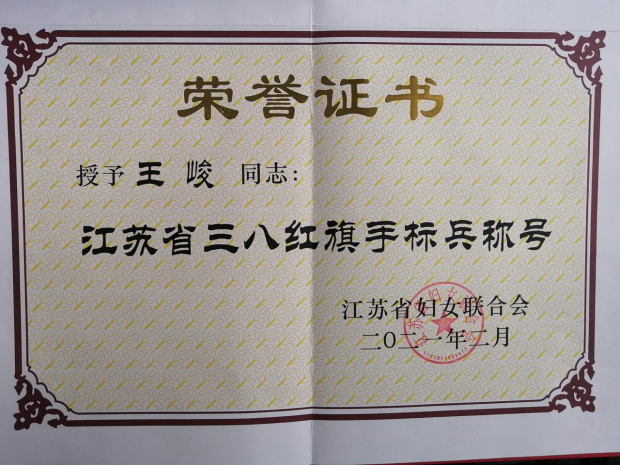 民建會(huì)員王峻榮獲江蘇省三八紅旗手標(biāo)兵榮譽(yù)稱(chēng)號(hào)