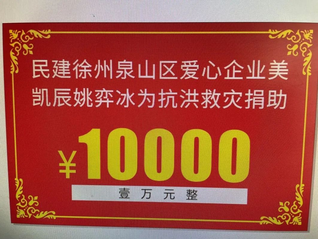 2021年7月中下旬,河南省鄭州、新鄉(xiāng)衛(wèi)輝、周口、平頂山魯山等地連降大雨,部分地區(qū)洪水泛濫,給人民生命財產(chǎn)造成重大損失,牽動著華夏兒女的心。民建徐州市委泉山區(qū)基層委員會八支部會員、美凱辰總裁姚弈冰心系災(zāi)區(qū)群眾,積極捐款捐物,馳援災(zāi)區(qū)。