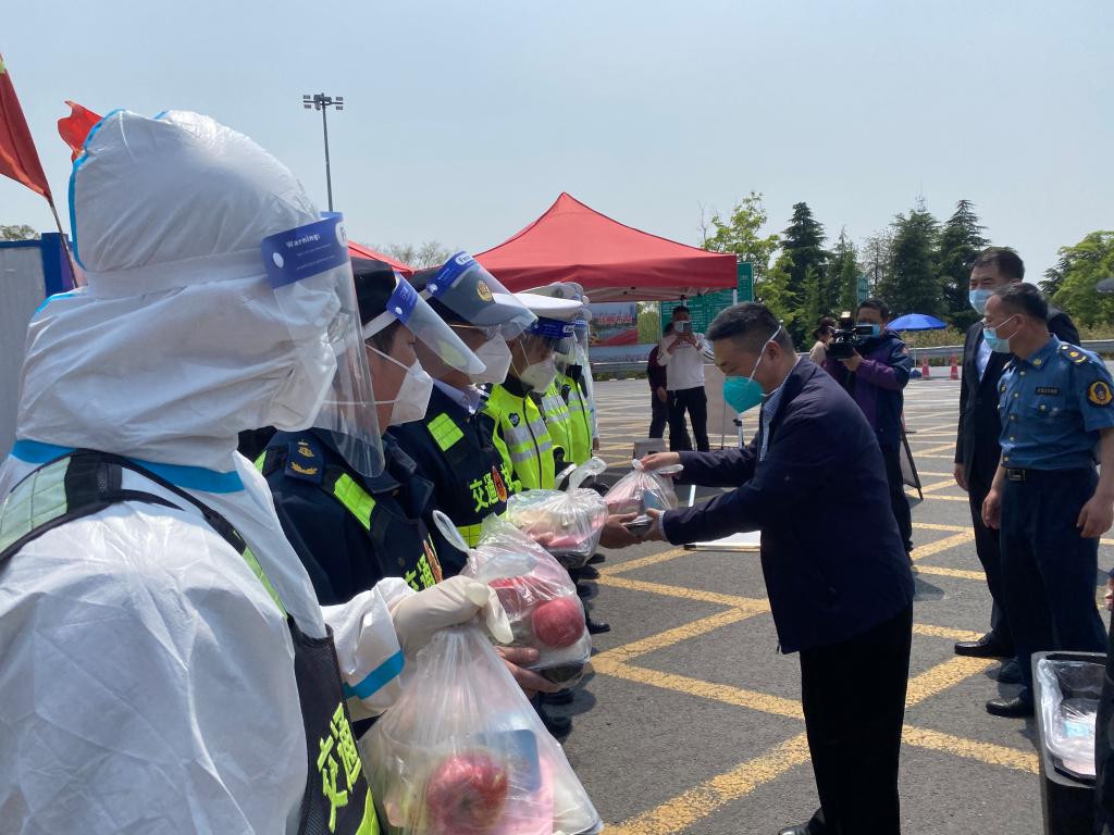 活動現(xiàn)場,林斌主委還對連續(xù)奮戰(zhàn)在交通卡口一線的工作人員進行了慰問,戴道路副主委接受了徐州電視臺采訪。