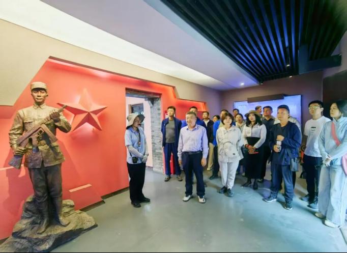 最后,大家走進窯灣戰斗陳列館學習參觀。1948年11月,淮海戰役在窯灣古鎮打響首戰。國民黨第六十三軍企圖西撤徐州,被華東野戰軍一縱三面合圍。經過四晝夜激戰全殲敵軍1.37萬余人,擊斃軍長陳章,為后續殲滅黃伯韜兵團奠定勝局。展館內,戰役沙盤、文物史料及場景復原生動再現了軍民協同作戰的壯闊畫卷。觀看華野戰士強渡運河的浮雕群像時,大家更加深刻感悟“聽黨指揮、敢于勝利”革命精神。