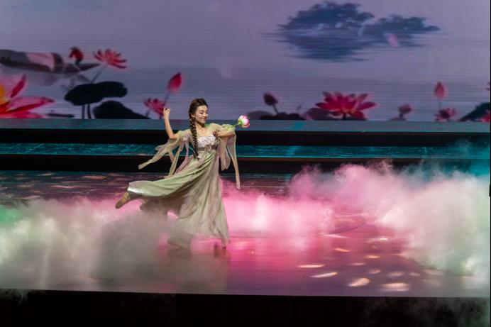 6 以身體為筆,以舞姿為墨,鼓樓區基層委選送的單人舞《盈盈芙蓉語》訴說著芙蓉的高潔與清雅,描繪出一幅動人的畫卷。