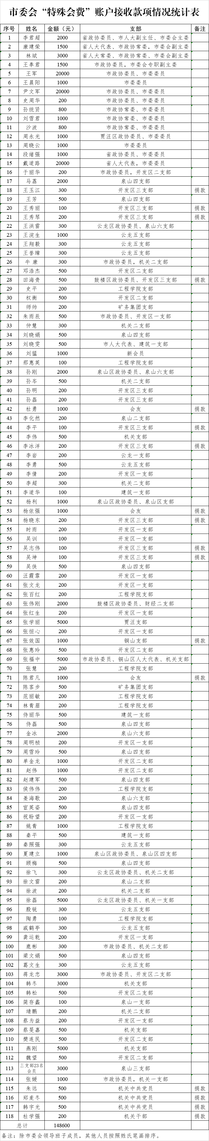 三、市委會“特殊會費”賬戶接收特殊會費及捐款情況