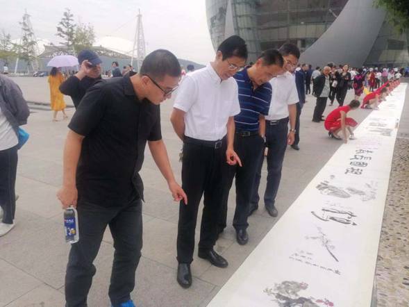 徐州民建慶祝新中國(guó)成立七十周年70米詩(shī)書(shū)畫(huà)卷在云龍湖音樂(lè)廳廣場(chǎng)盛大展出