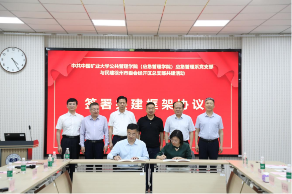民建徐州市委會經開區總支主委徐磊、中共中國礦業大學公共管理學院應急管理系黨支部書記施煒分別介紹了各自支部情況,并代表支部簽署了共建框架協議。隨后,雙方就如何開展合作共建進行了深入的交流發言,共同探討了未來的合作方向與具體措施。