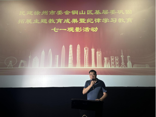 中國共產(chǎn)黨成立103周年之際,6月29日下午,民建徐州市委會(huì)銅山區(qū)基層委員會(huì)組織開展鞏固拓展“凝心鑄魂強(qiáng)根基、團(tuán)結(jié)奮進(jìn)新征程”主題教育成果暨紀(jì)律學(xué)習(xí)教育七一觀影活動(dòng)。民建徐州市委會(huì)副主委戴道路應(yīng)邀出席活動(dòng)并講話。活動(dòng)由銅山區(qū)基層委二支部主委張效國主持。