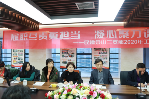 會上,孔穎男主委領學了中共十九屆四中全會精神和民建江蘇省委九屆四次全委會議精神核心內容,重點學習了民建徐州市十三屆八次全委(擴大)會議上李君超主委代表市委會所作題為《凝聚共識 履職擔當 為新時代徐州高質量發展獻計出力》的工作報告;通報了2019年度支部新聞宣傳和社情民意信息工作情況及會費收支情況;傳達學習了泉山區政協對2020年提案工作的相關要求。